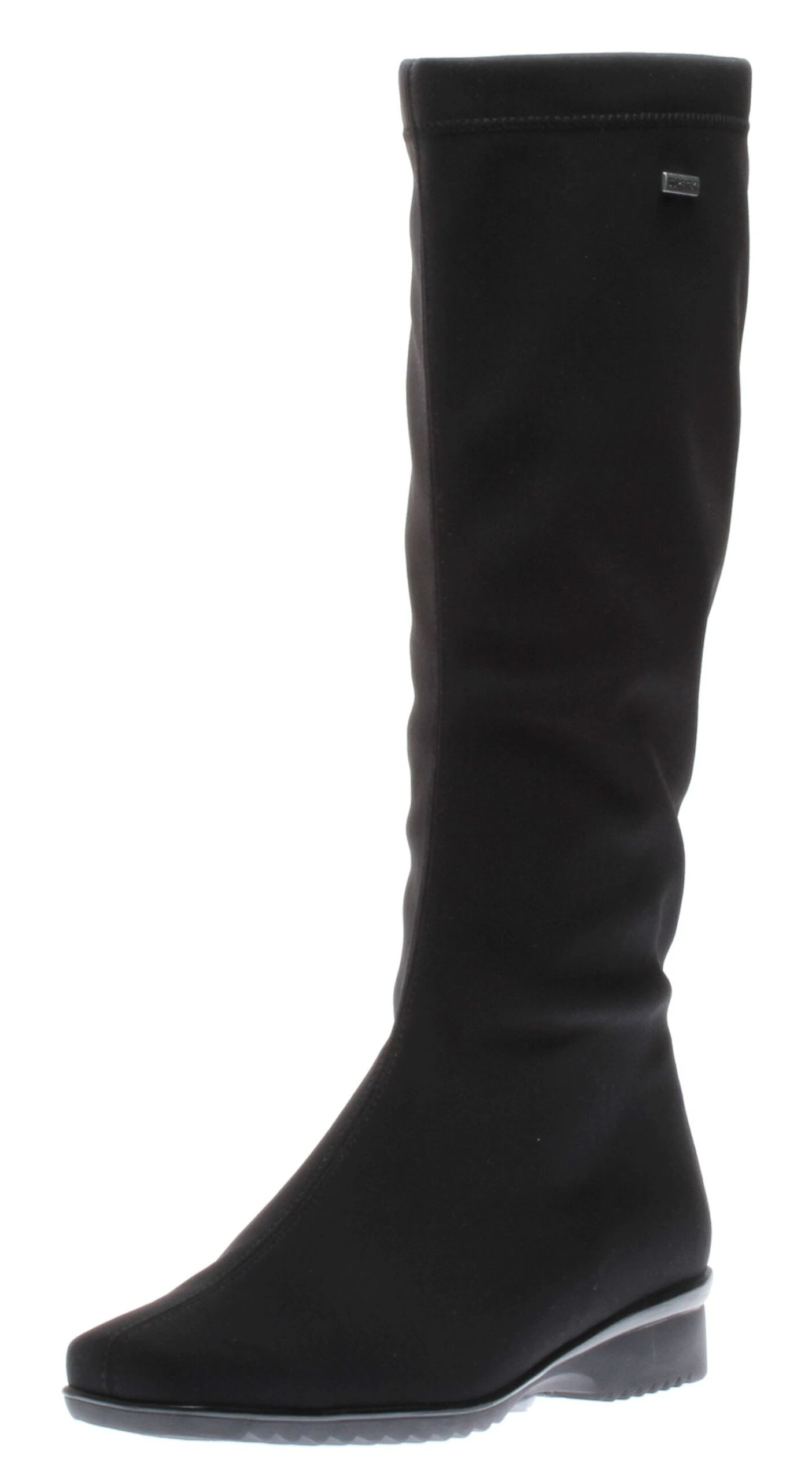 Class tall stretch fabric Gore-Tex waterproof boot. Toe box provies plenty of room. Easy side zip entry. Lightly treaded sole for grip.