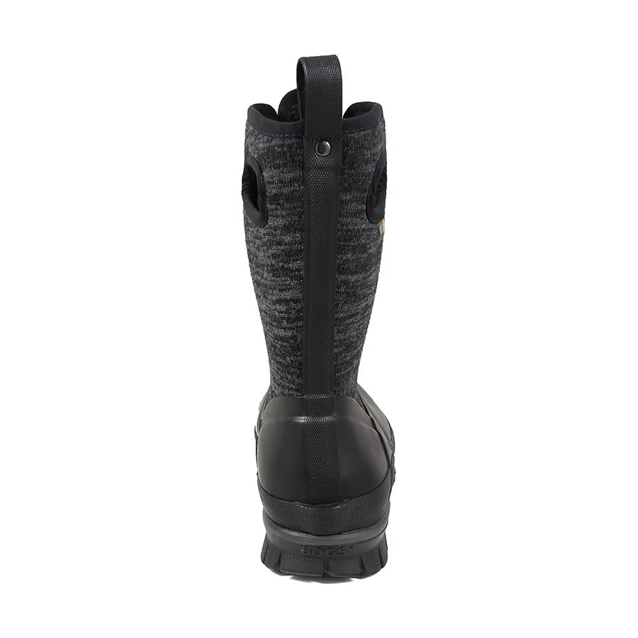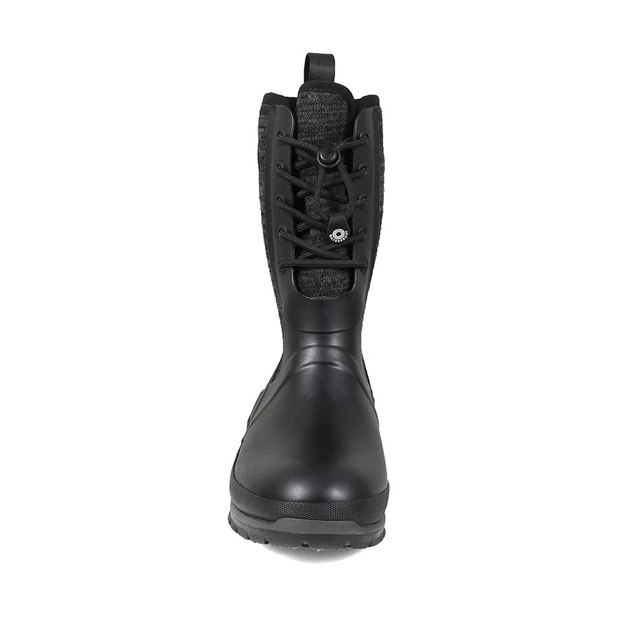 Give a newfangled look to your winter attire wearing these women’s Crandall Lace Knit black winter boots by Bogs. Made of mixed materials with waterproof upper, these insulated boots have mid-shaft silhouette, appealing contrast stitching patterns, round toe front, bungee lace-up front, signature etched eyelets, cut-out at the sides, pull loops and pull tab at both sides and the top shaft for convenient wearing and patterned outsole for a sturdy grip.