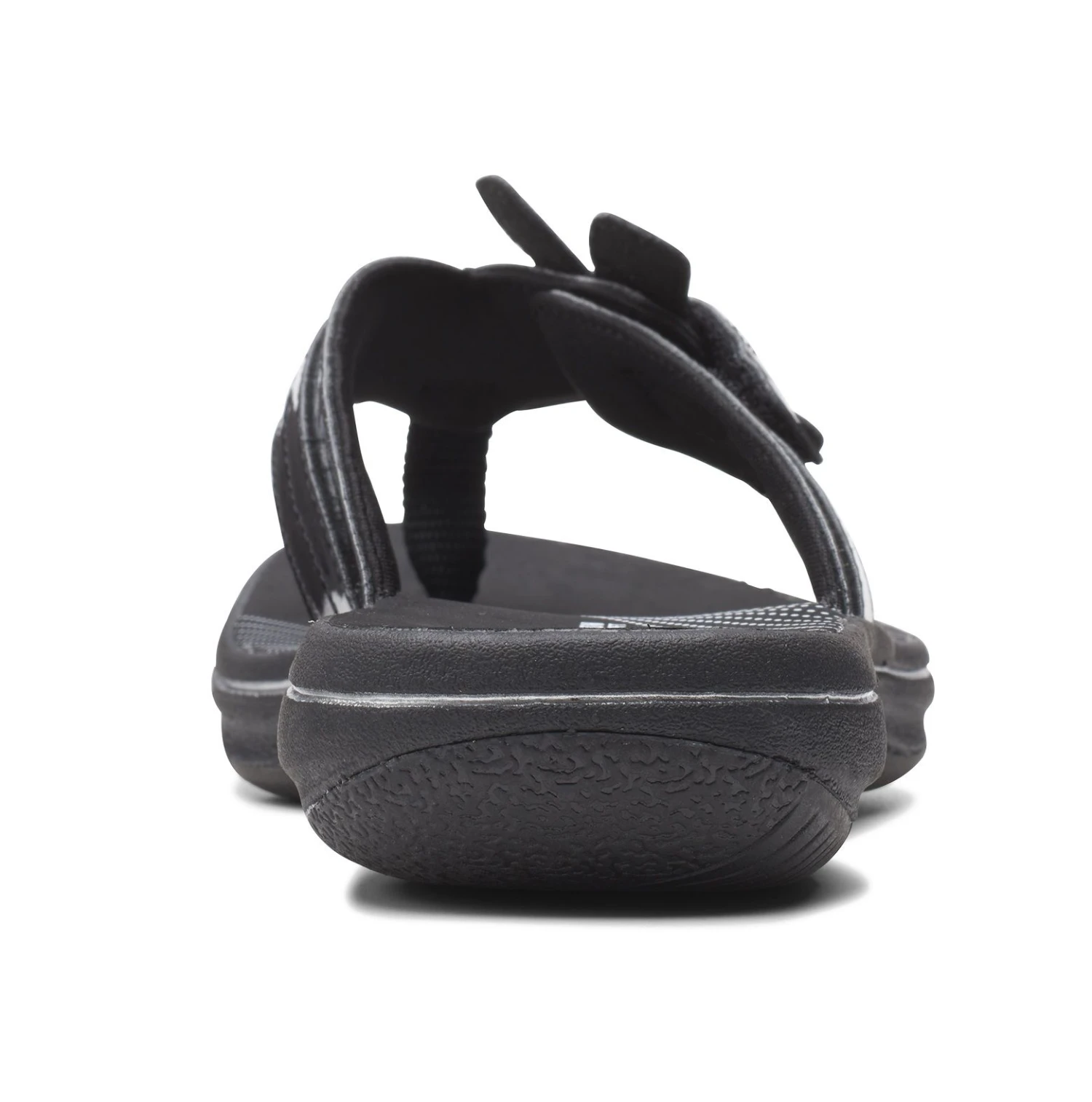 Pack light, step lighter. The Cloudsteppers™ Brinkley Flora flip flop sandal comes in black patent with a floral embellishment for a look and feel that’s as fun as summer should be. A cushioned EVA midsole and footbed support and protect the foot from shells and beach pebbles without adding any extra weight.