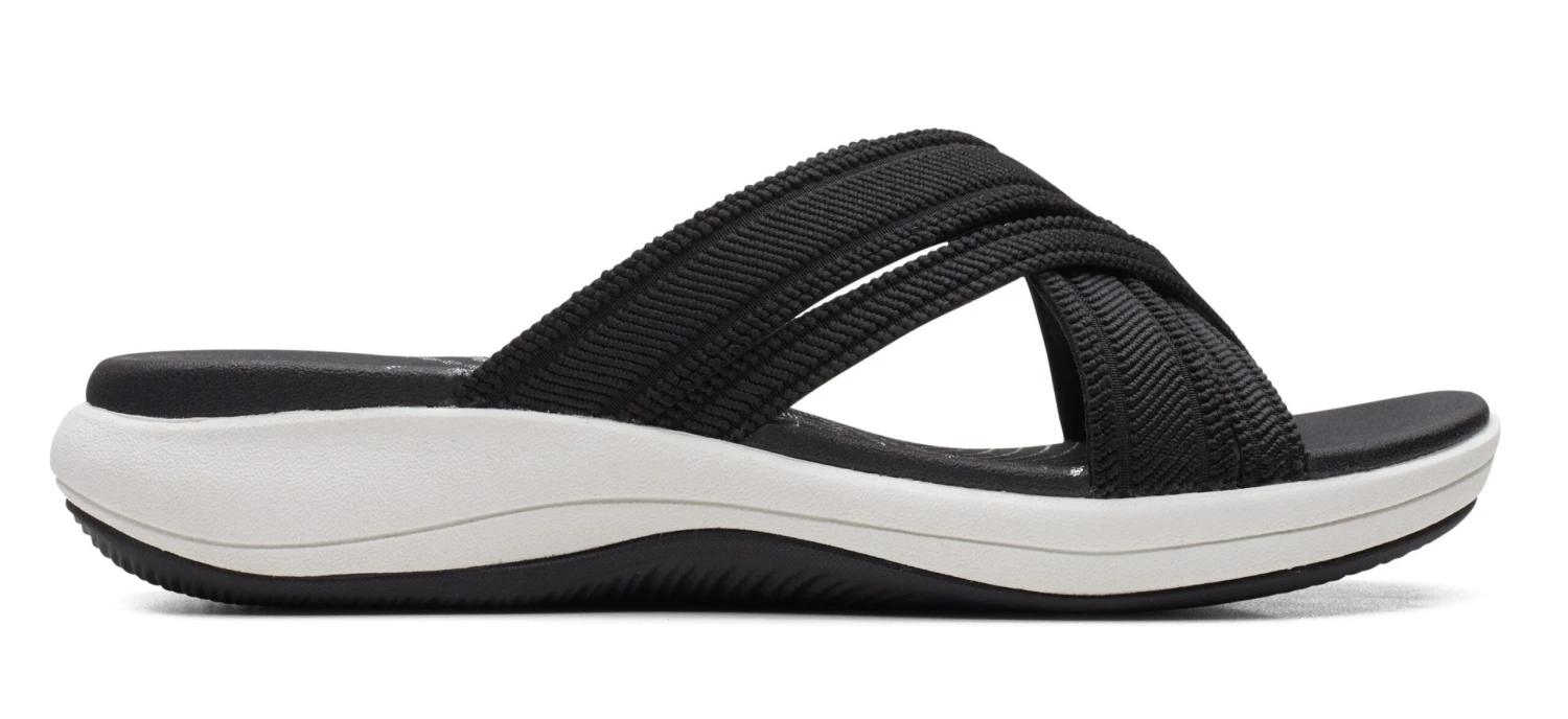 With a super soft EVA footbed delivering the comfort expected from Cloudsteppers collection by Clarks, the Mira is simple, lightweight and easy to wear, while the black and white color pops spark interest and make this wearable sandal even more fun.These are the perfect slide sandals for sunny spring and summer days!