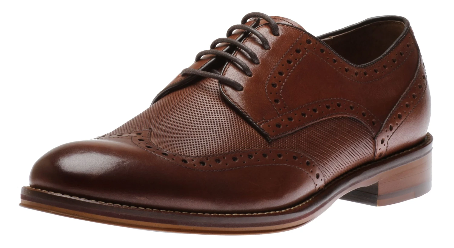 The Conard derby shoe is a classic dress shoe that features an Italian calfskin leather upper in an embossed wingtip silhouette. Designed with a leather welt for enhanced durability and support, it also features adjustable laces for a secure fit. Inside, a smooth leather lining keeps feet breathing easily while a fully padded cushioned insole imparts underfoot comfort and support. A durable rubber outsole delivers flexible shock-absorbing traction.