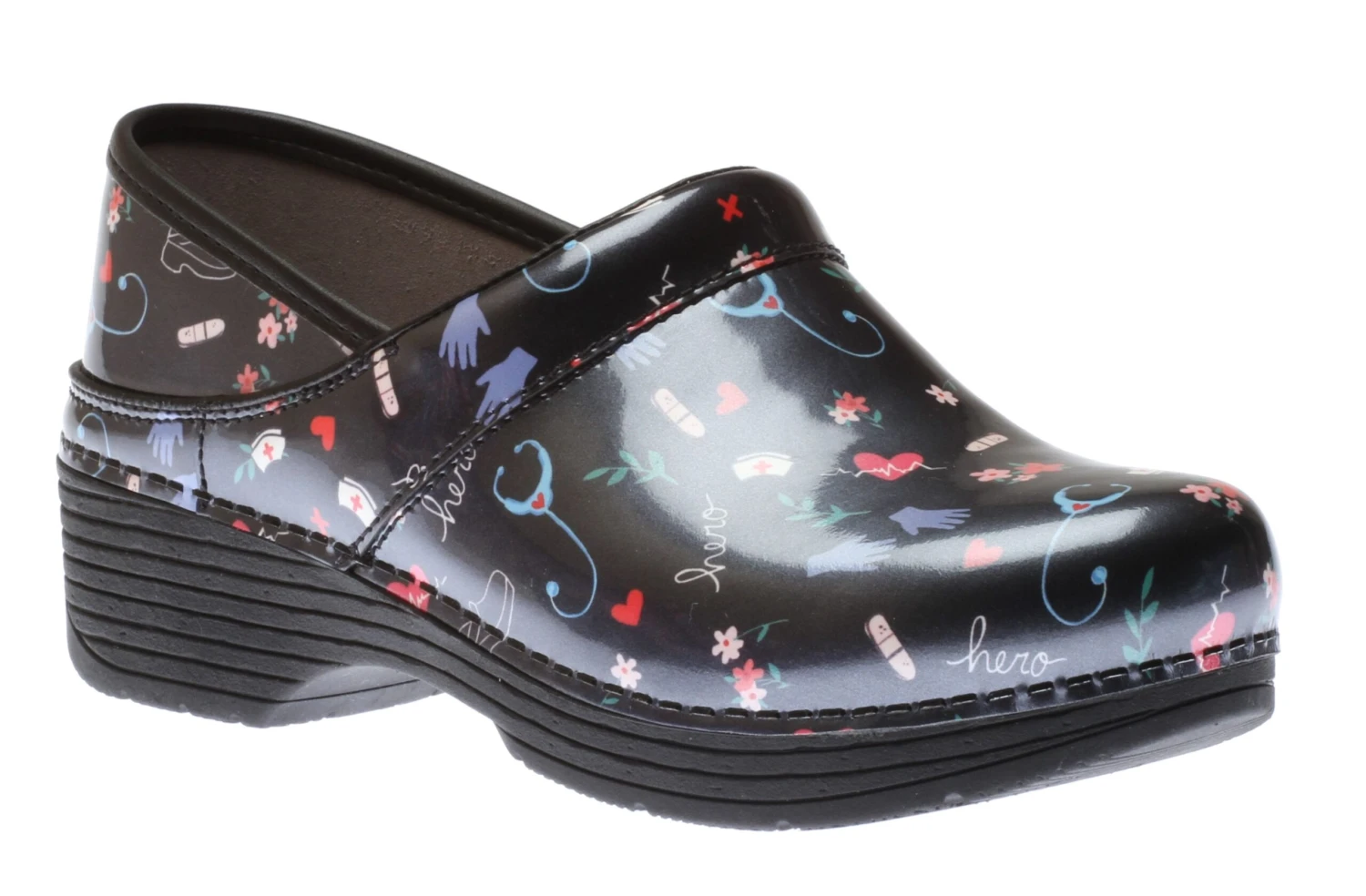 Dansko’s LT Pro clog provides a lightweight solution with a soft ride underfoot. Featuring a cushioned footbed, Dansko patent-pending compression molded EVA outsole, and stapled construction, this soft and comfortable clog is made with stain-resistant, wipe-clean leather in a Dansko exclusive novelty print.