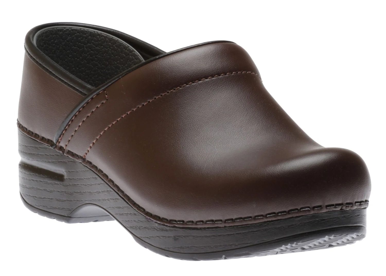 The Dansko Professional is the clog that launched a comfort revolution. Inside its iconic silhouette is a roomy reinforced toe box, an anatomically contoured PU midsole, an inner frame for stability and support, a padded instep collar, and a protective heel counter that allows the heel to move up and down freely while providing lateral stability. The anti-fatigue rocker bottom assists with forward motion while walking to add hours of comfortable support throughout your day.