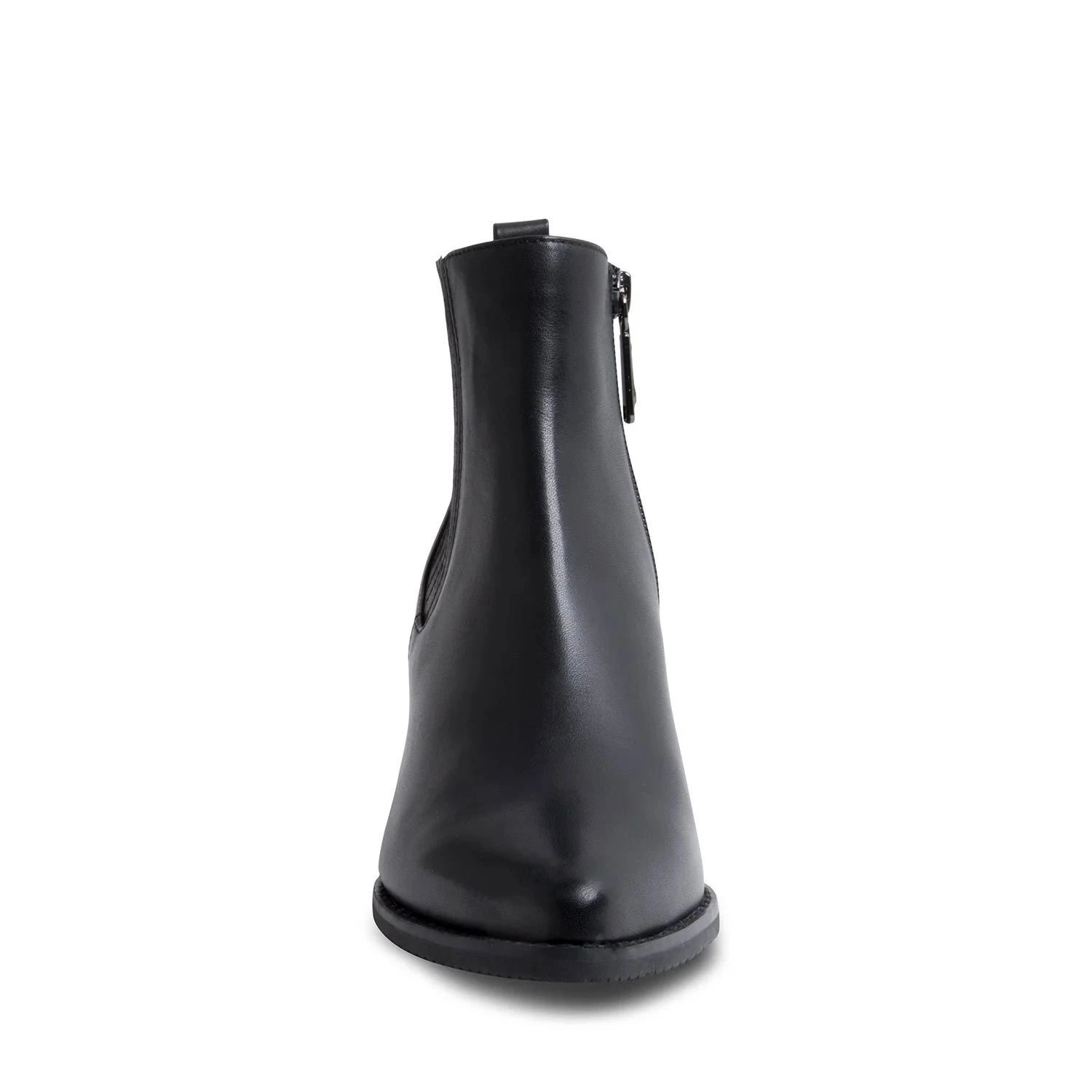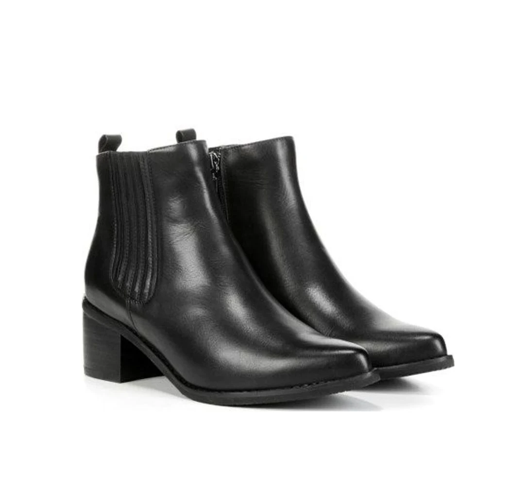 This chic ankle bootie features a waterproof leather upper enhanced with AquaProtect® seal, a type of seam-sealed construction. This process provides superior protection against water infiltration and the harmful effects of calcium/salt for enhanced durability. A pointed toe provides a fashionable look while a side zipper, stretch gore panel and rear pull tab ensure an easy on-and-off. The interior features an insulated printed textile lining for a warm breathable wear. A durable rubber outsole delivers stable shock-absorbing traction. Block heel height: 2 inches. Shaft height: 4 inches. Circumference: 8 inches.