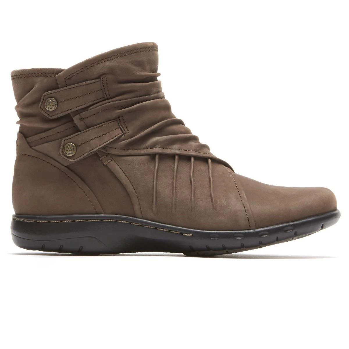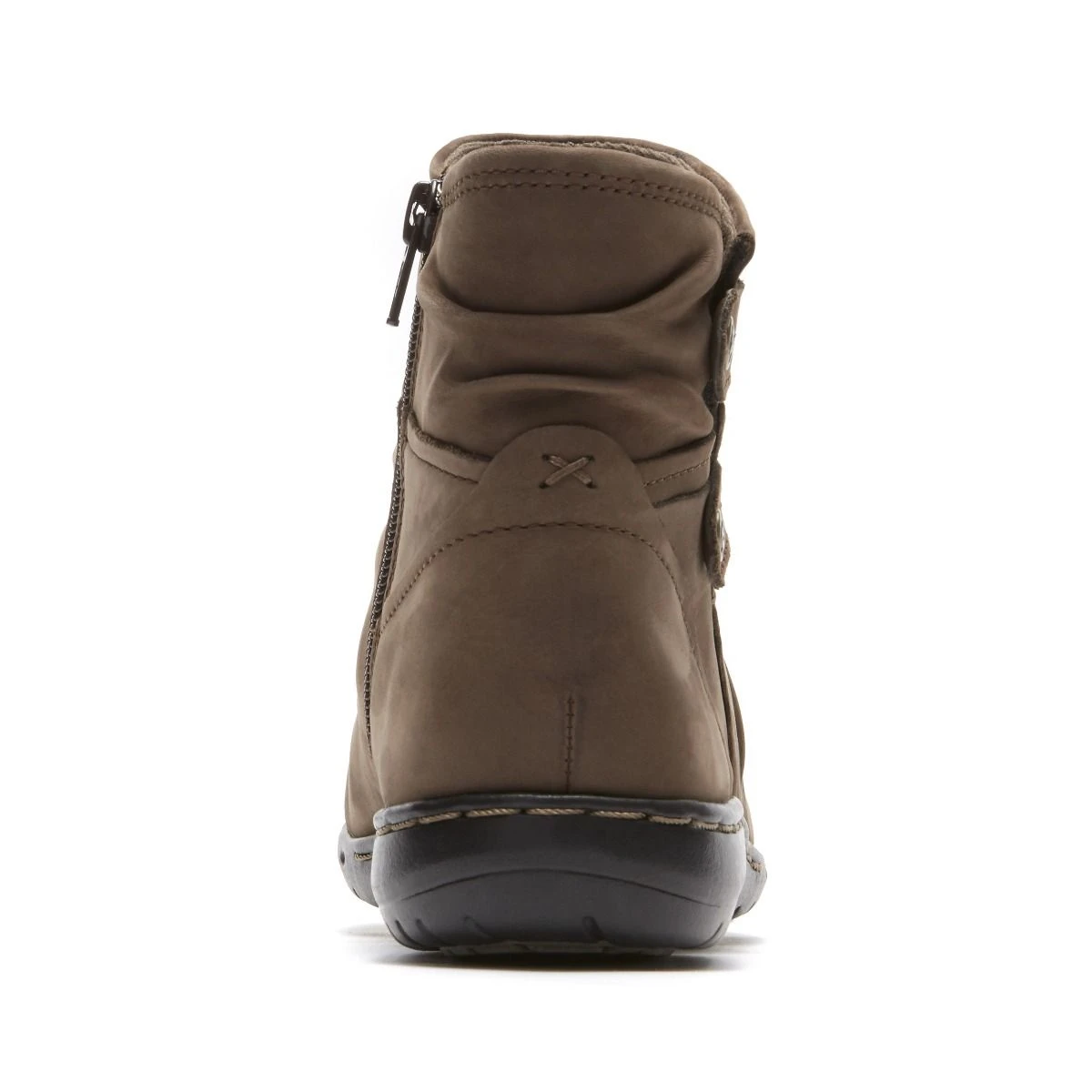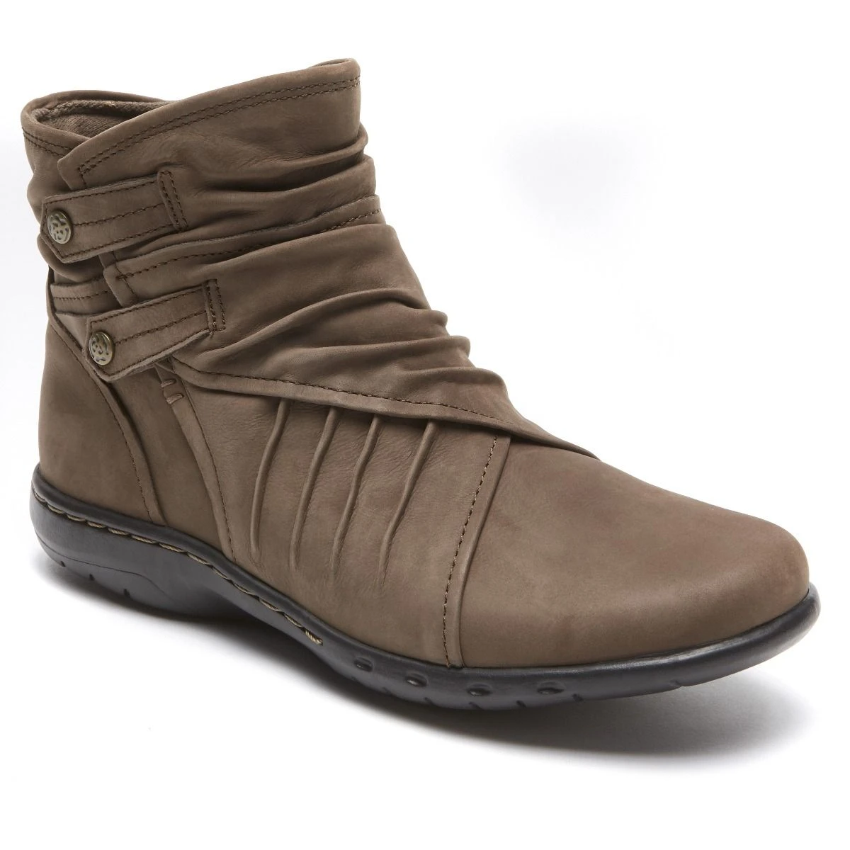 The Cobb Hill Penfield Pandora ankle boot isn’t your run-of-the-mill boot. Antiqued values with bungee closures and pretty gathers are all done on luxuriously soft, full-grain leather. An interior comfort pod and added cushioning in the footbed and pad at the forefoot make every step soft and stable. Pull on these women’s booties when you’re wearing your favorite, go-to pants or jeans.