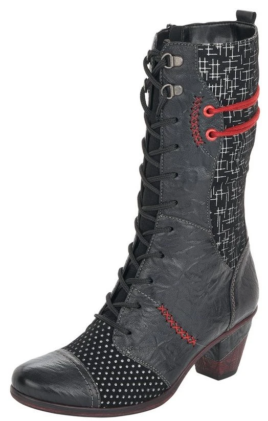 These striking Ottawa ankle boots comprise of contrasting textures and prints for a fun, unique, Victorian-inspired, vintage look. This ankle bootie features a leather upper comprised of a draped panel with metal values at the side, cap toe, contrast stitching, and two stylish prints for a unique look. Adjustable laces, a side zipper and a rear pull tab ensure a secure fit and an easy on-and-off. Inside, a soft textile lining provides warm comfort while a removable insole helps reduce fatigue and deliver all-day cushioning and support. A partially leather-wrapped chunky heel and a durable, flexible, lightweight, thermoplastic rubber outsole provides stable shock-absorbing traction.