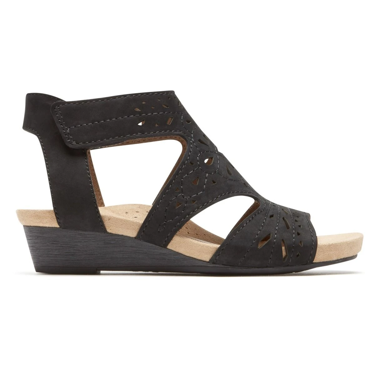 When artisan style is calling, Rockport’s Cobb Hill Hollywood caged sandal is the answer. The Hollywood shows off pretty laser-cut details, a wood-wrapped wedge heel, chunky straps, all to create a bohemian look that’s distinctively you. The reliable support comes by way of an anatomically molded footbed and the added traction of a durable outsole.